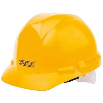 Draper Yellow Safety Helmet to EN397 is within an impact-tested high-density polyethylene shell fully for head harness Safety Helmets in standard construction are site colours to satisfy the new Safety Helmet Colour Standard. Sold loose.
